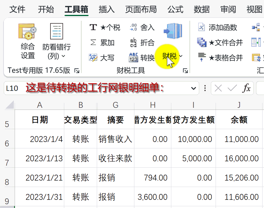 EXCEL必备工具箱--转换网银对账单功能,与银行对账不再难