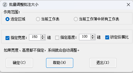 15.97版改进:由于WPS已经支持调整批注大小,所以该功能在WPS下也允许使用。