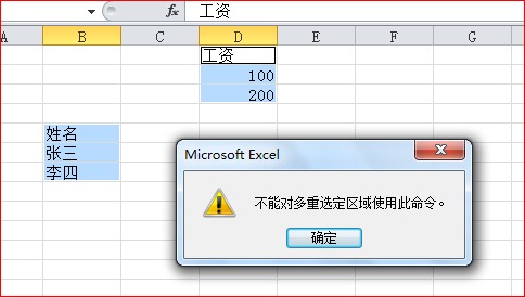 通常情况下,EXCEL不允许对多个选择区域进行复制、粘贴: