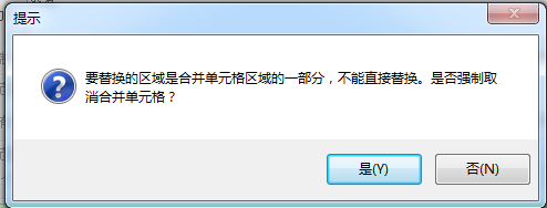 在勾选强制替换,且选定“仅限于指定单元格区域”的情况下,这时候进行全部替换,如果该区域存在合并单元格会提示: