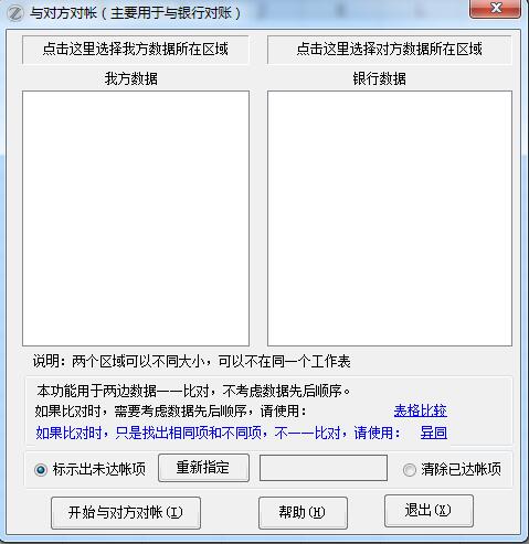 1、本功能主要用于与银行对账,当然也能用于其他各种与对方进行数据逐一核对(对账)的情况。