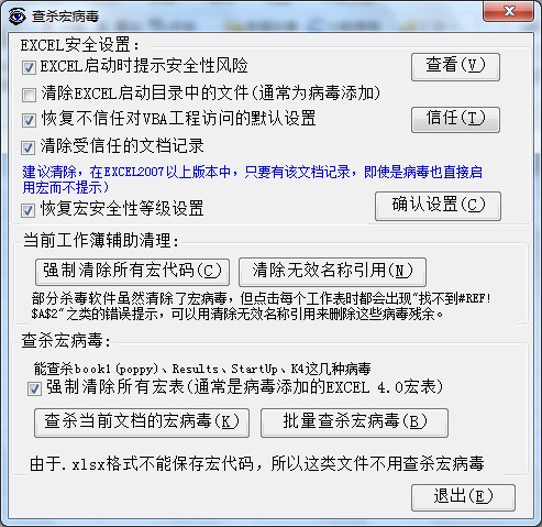 EXCEL必备工具箱--查杀宏病毒功能: