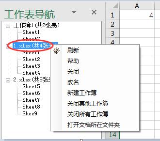 点击功能区的“导航”按钮,会出现已打开工作簿、工作表的树状图,直接点击对应名称的节点,就可以切换过去,简单明了。