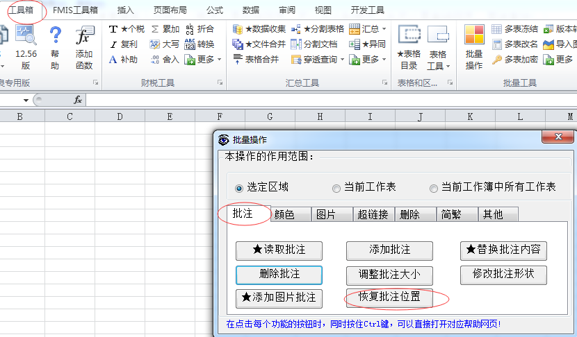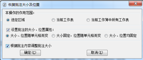 EXCEL必备工具箱,恢复批注位置功能,恢复批注到默认位置,并可根据选择根据批注内容调整大小。