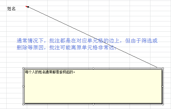 通常情况下,批注都是在对应单元格的边上,但由于筛选或删除等原因,批注可能离原单元格非常远: