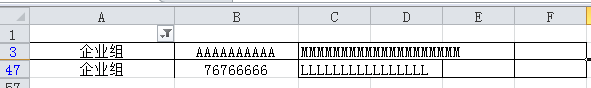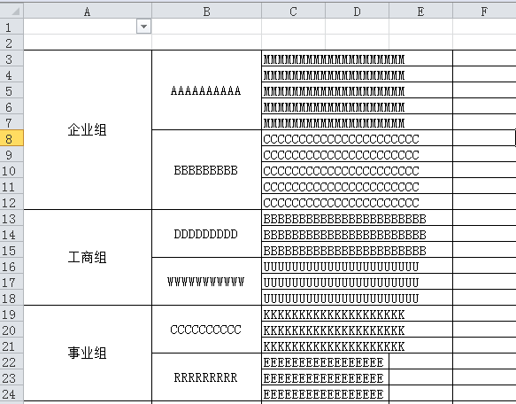 比如,存在下面有合并单元格的表格,要对A列进行筛选,选出所有的“企业组”: