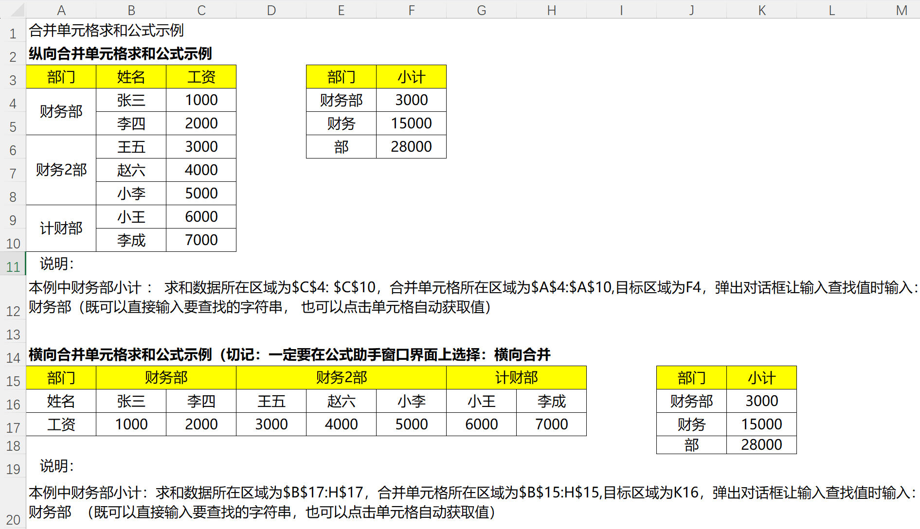 合并单元格求和: