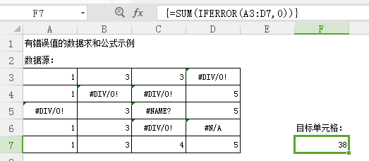 有错误值的数据求和: