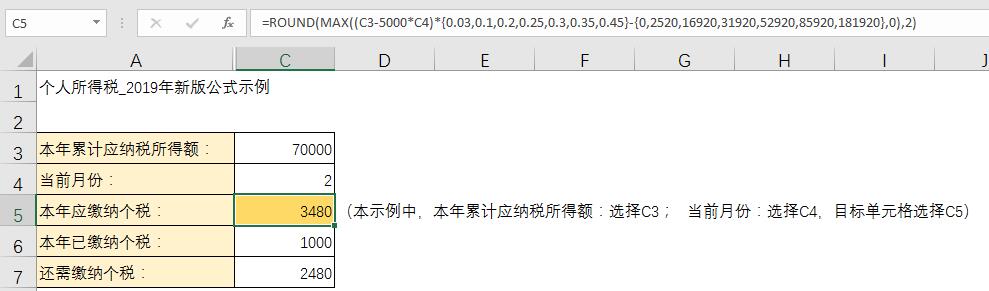 本公式直接用EXCEL公式计算个人所得税,如果需要计算全年一次性奖个税,税后工资反算含税工资等高级功能,还是需要使用工具箱的财税工具的个税功能。