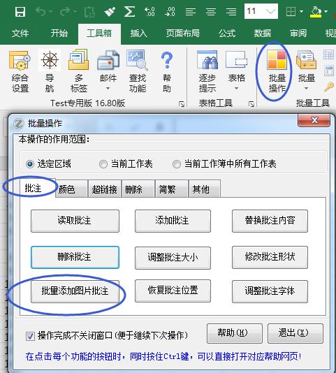 提示:如果想批量为选定的单元格区域添加图片批注,请使用批量工具下的添加批注功能:
