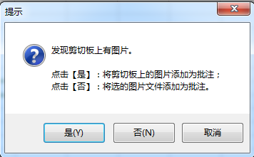15.93版改进:如果发现剪切板上有图片,会提醒是否将剪切板上的图片直接添加为图片批注。