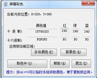使用非常简单,只需点击这个“屏幕取色”按钮,就会有这个窗体显示,上面的数值会随着光标的位置实时变化,就怎么简单实在。