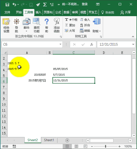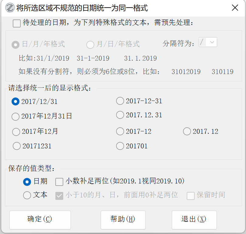 Excel必备工具箱--统一日期格式功能,将所选区域不规范的日期统一为同一格式。