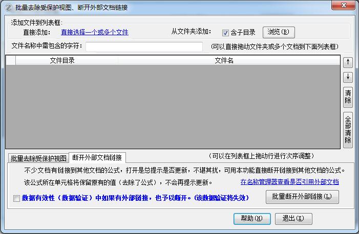15.40版改进:增加了“数据有效性(数据验证)中如果有外部链接,也予以断开。(该数据验证将失效)”选项。