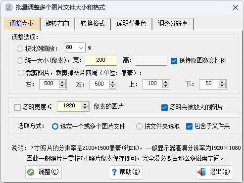 为了防止将已经调整过的照片又一次调小,或者将本来的小图片给放大了(通常没有放大图片的必要,因为图片会不清晰),本功能还提供了专门的选项。