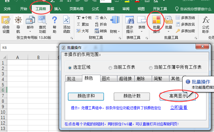 17.14版改进:增加了“改变单元格背景色”选项,并且对窗体界面上的选项进行了记忆处理,便于下回调用时直接是上回的选择。