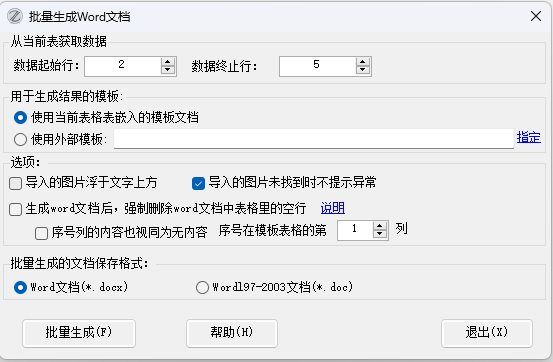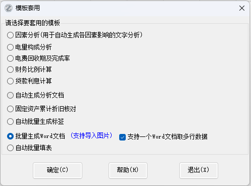 (1)【批量生成Word文档】、这个功能在进行【模板计算】时,可以选择docx格式的模板。