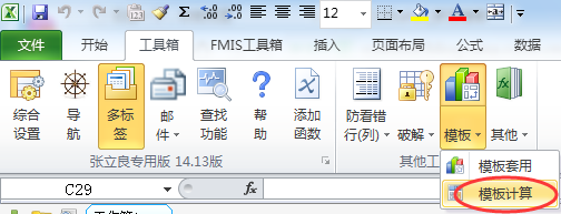 在保持该表格为当前表的情况下(切记),点击模板、模板计算: