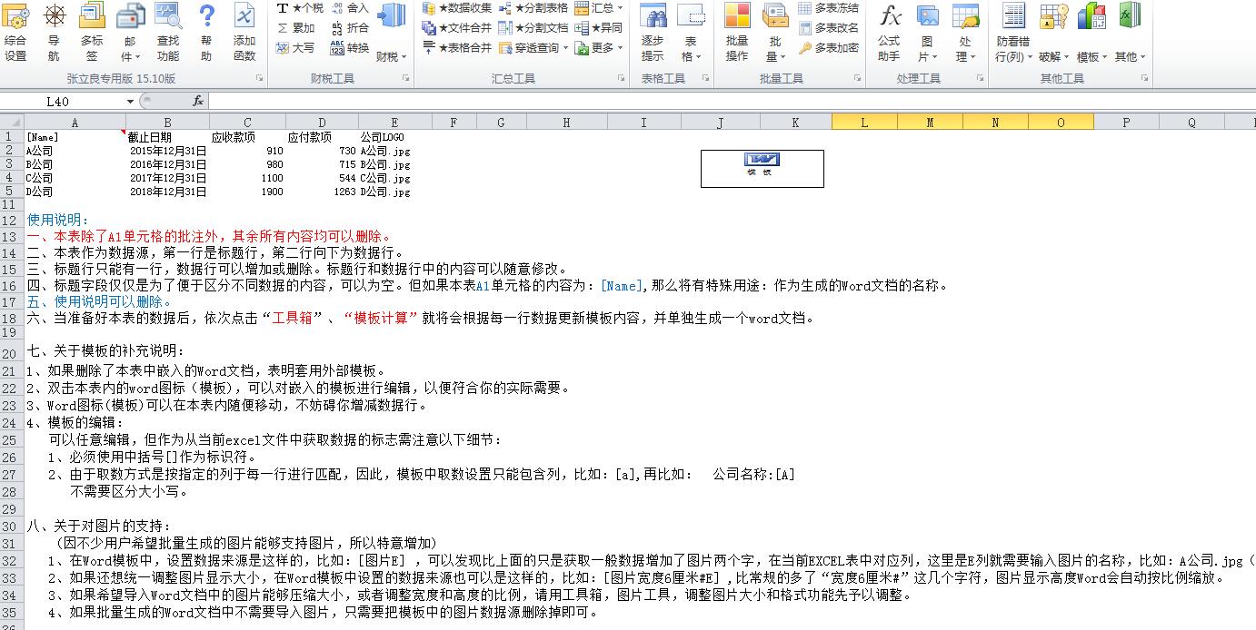 本模板其他都与普通“批量生成WORD文档”模板完全一致,特殊的地方说明如下: