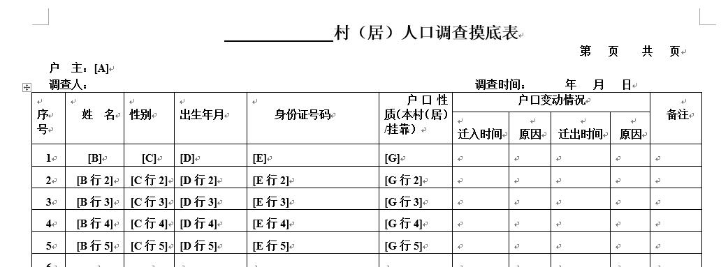 为了解决本表(数据源)与模板文档表格中多行的对应关系,系统采用了如下设定: