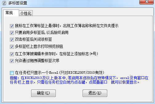 15.74版改进:在EXCEL2013或更高版本中,在任务栏只显示一个Excel窗口存在一些不美观的地方,因此将该选项修改为只对EXCEL2007/2010有效。