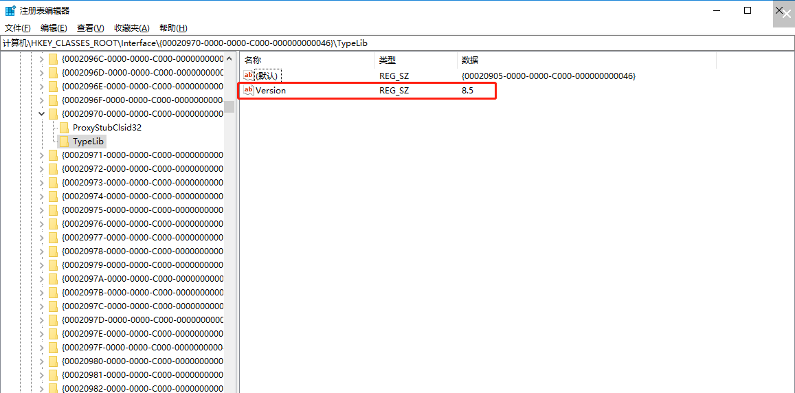 路径:计算机\HKEY_CLASSES_ROOT\Interface\{00020970-0000-0000-C000-000000000046}\TypeLib