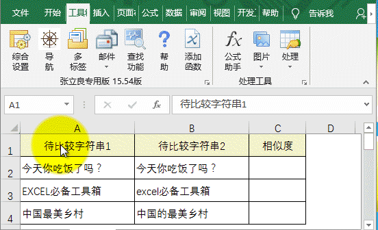 EXCEL必备工具箱--比较字符串相似度功能,能够忽略大小写进行比较(EXCEL必备工具箱15.54版新增功能)