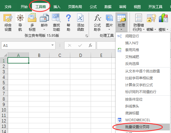 EXCEL必备工具箱--批量设置分页符功能,批量为当前表格添加分页符,或者去除人工分页符。