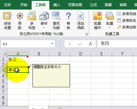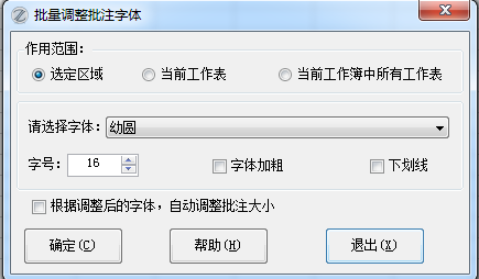 EXCEL必备工具箱--调整批注字体功能,可以批量调整批注字体名称、大小,是否加粗,是否有下划线