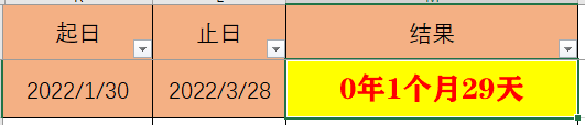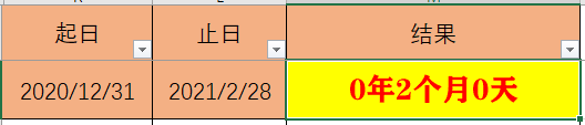 类型值=2,输出含零值的数字型日期差,如“3年0个月5天”、“0年0个月5天”、“0年11个月0天”;省略〇年、〇个月、〇天等整差字样。本类型便于某些特殊场合利用文本函数提取年值、月值、天值,以便降低难度和缩短公式的长度。