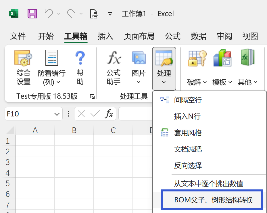 EXCEL必备工具箱,BOM父子、树形结构转换功能,实现BOM父子结构与树形结构相互转换!