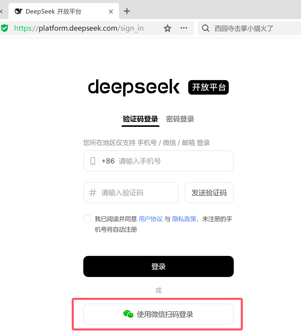 2、点击【API开放平台】后,就会提示登录,各种登录方式都行,最省事的还是【微信扫码登录】: