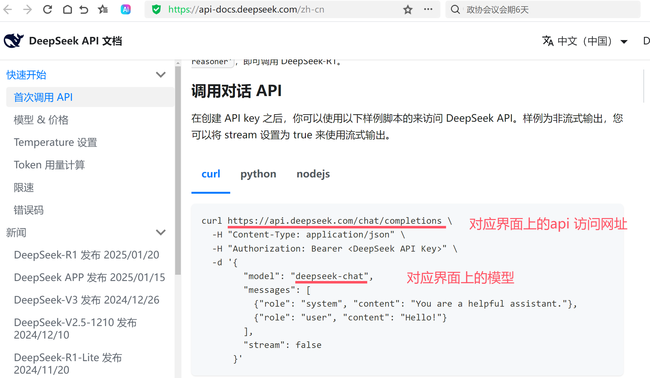 2、会进入https://api-docs.deepseek.com/zh-cn,向下滚动,会看到这段内容: