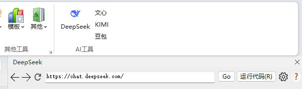 DeekSeek功能采用默认嵌入网页方式,完全免费,保持了网页版所有追加提问、历史记录、上传文档等优点,而且在生成VBA段上面,直接增加【运行代码】按钮,一键实现自动化处理,非常方便!