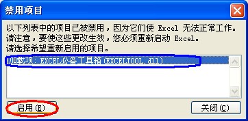 解决办法:从EXCEL中取消对本工具箱的禁用。