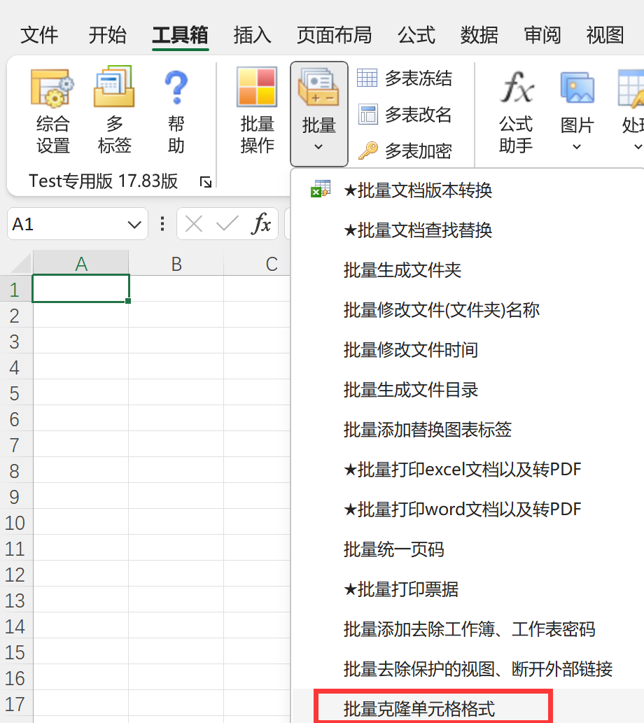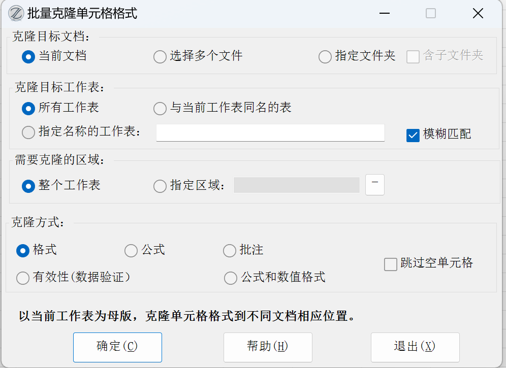 Excel必备工具箱,批量克隆单元格格式功能,以当前工作表为母版,批量克隆单元格格式到不同文档相应位置。