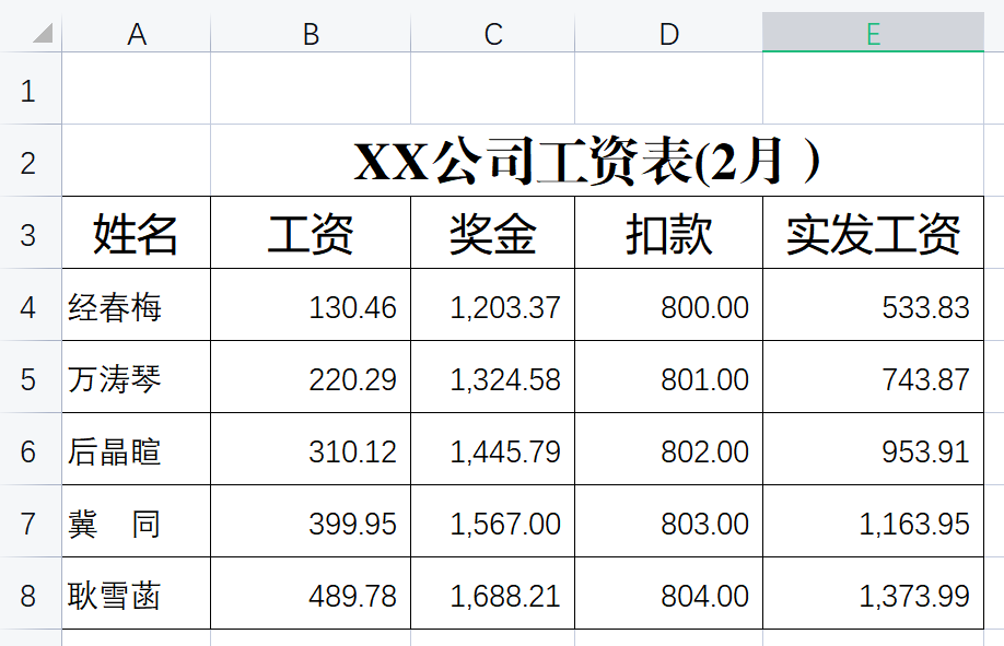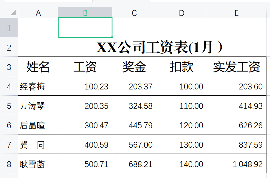 比如当前工作表是下面已经设置好格式的表: