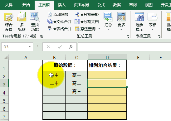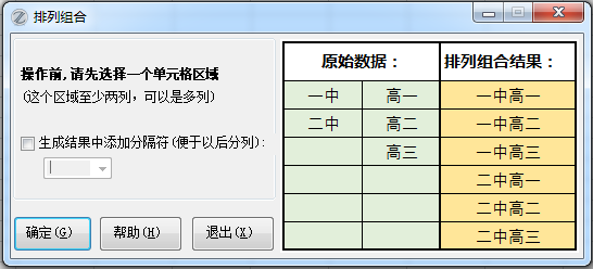 EXCEL必备工具箱,排列组合功能,将所选区域内的多列数据进行排列组合,形成一列数据