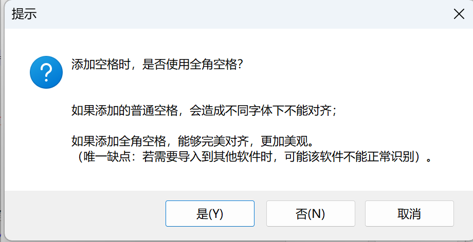 18.50版改进;允许选择普通空格还是全角空格,增加了提示: