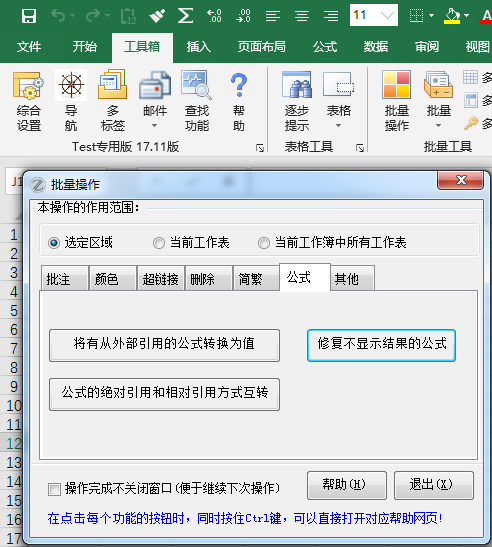 EXCEL必备工具箱,修复不显示结果的公式功能,自动批量修复那些不显示结果的异常公式