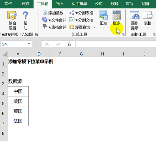 3、工具箱添加函数功能,还提供了使用下拉框的下拉菜单的方式,请参阅