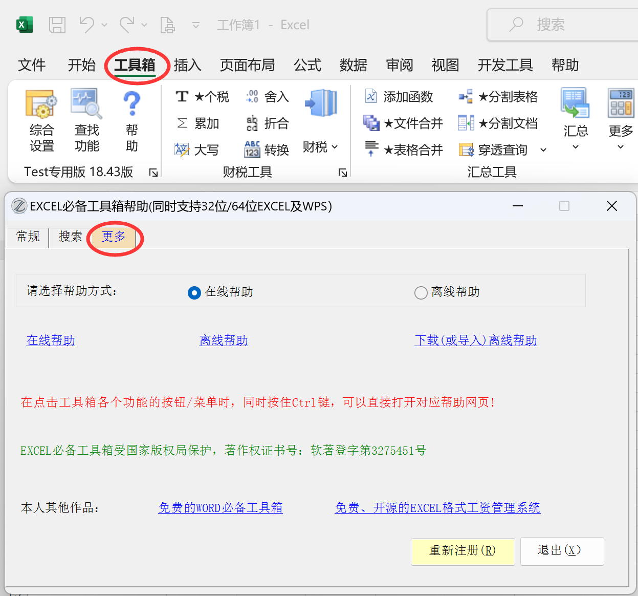 EXCEL必备工具箱,一款自带免费多标签的EXCEL工具箱,同时支持office和WPS,绝大部分操作可撤销。