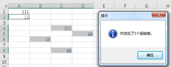 定位超链接区域:一次选定指定区域内(当前选定区域、当前表格、当前文档)中所有有超链接的单元格。