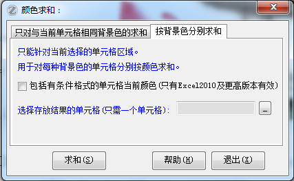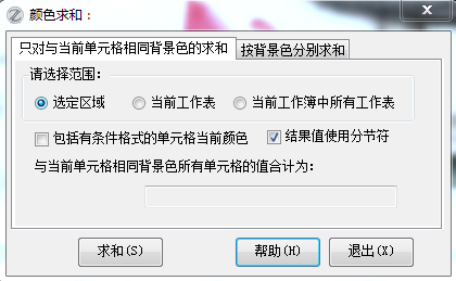 13.80版,增加了“按背景色分别求和”选项卡,用于对每种背景色的单元格分别按颜色求和。