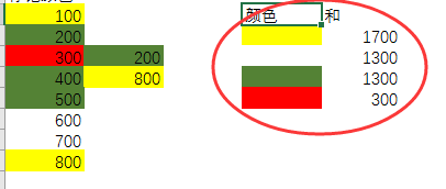 在本窗体上选择D4存放结果,点击“求和”按钮后,会对每种背景色(包括没有背景色或白色的区域)分别求和: