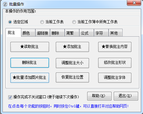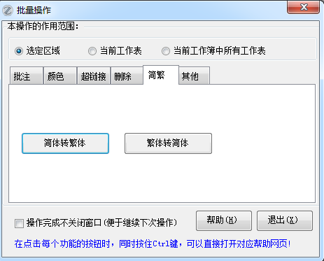 本类功能可以分别针对不同的范围进行操作,可以是选定区域、当前工作表、当前工作簿。