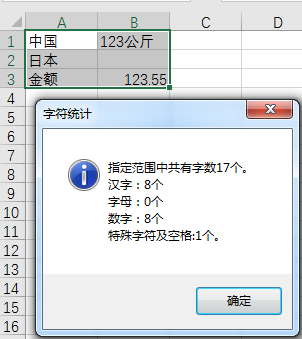 统计指定区域的字符个数,并分别统计汉字、字母、数字等