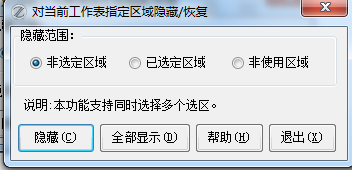 功能:对当前工作表选定区域、非使用区域进行隐藏或取消所有隐藏。