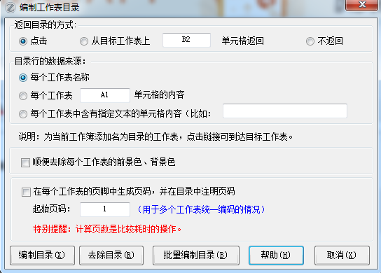 7.0版开始,增加了批量处理,方便对多个excel文档生成工作表目录。