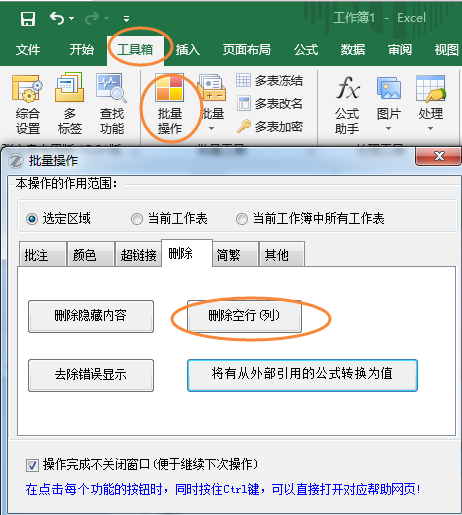 EXCEL必备工具箱--删除空行(列)功能,可以根据所选区域进行判断,批量删除空行、空列